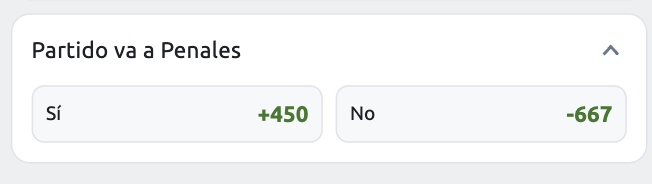 En este caso, apostás a que el partido va a terminar en una definición por penales, así que solo es válido en encuentros de eliminación directa.
